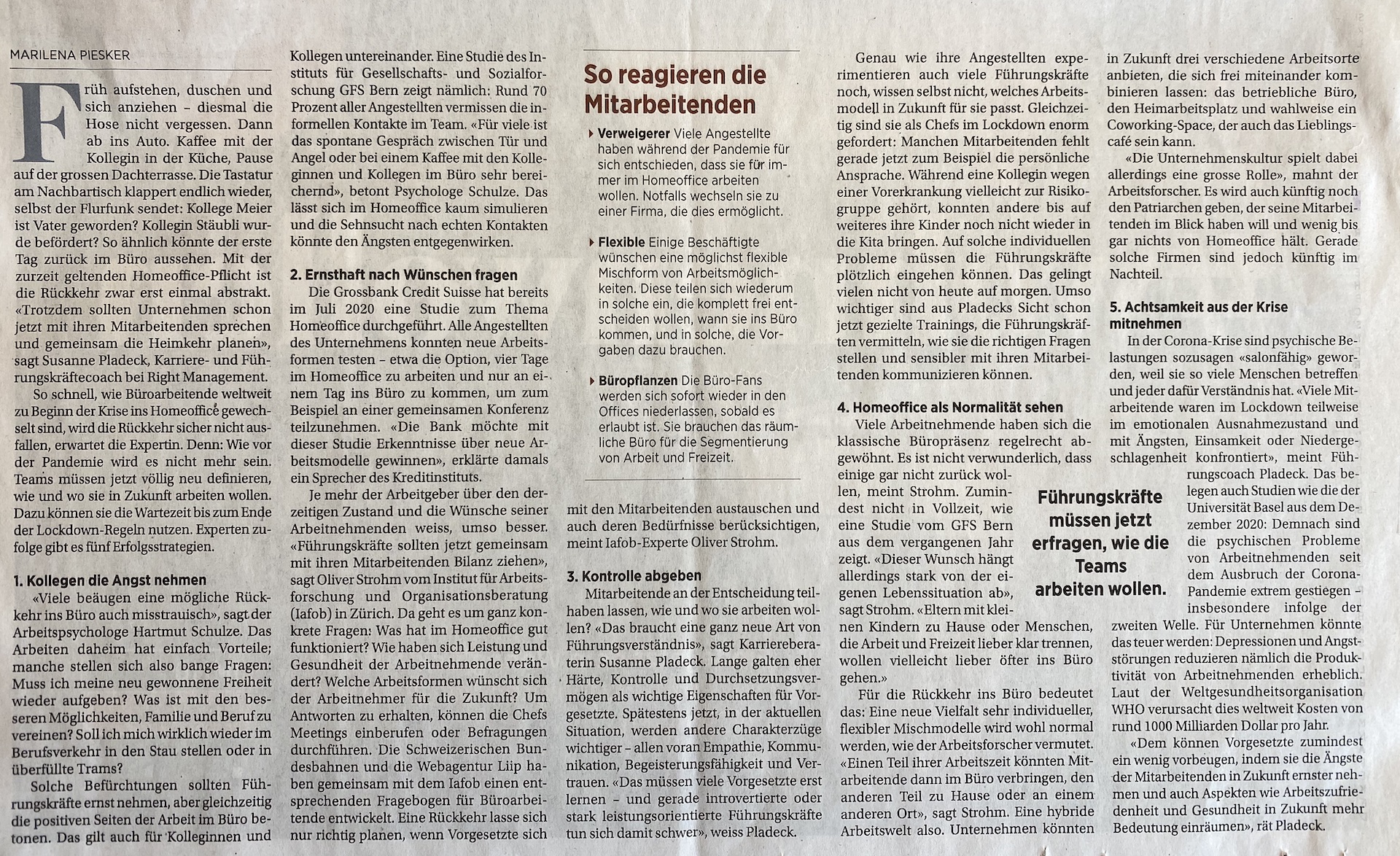 Ein spannender Artikel aus der Handelszeitung vom 29.April 2021: So gelingt es Firmen, einen intelligenten "Back to Office"-Plan auszuarbeiten.